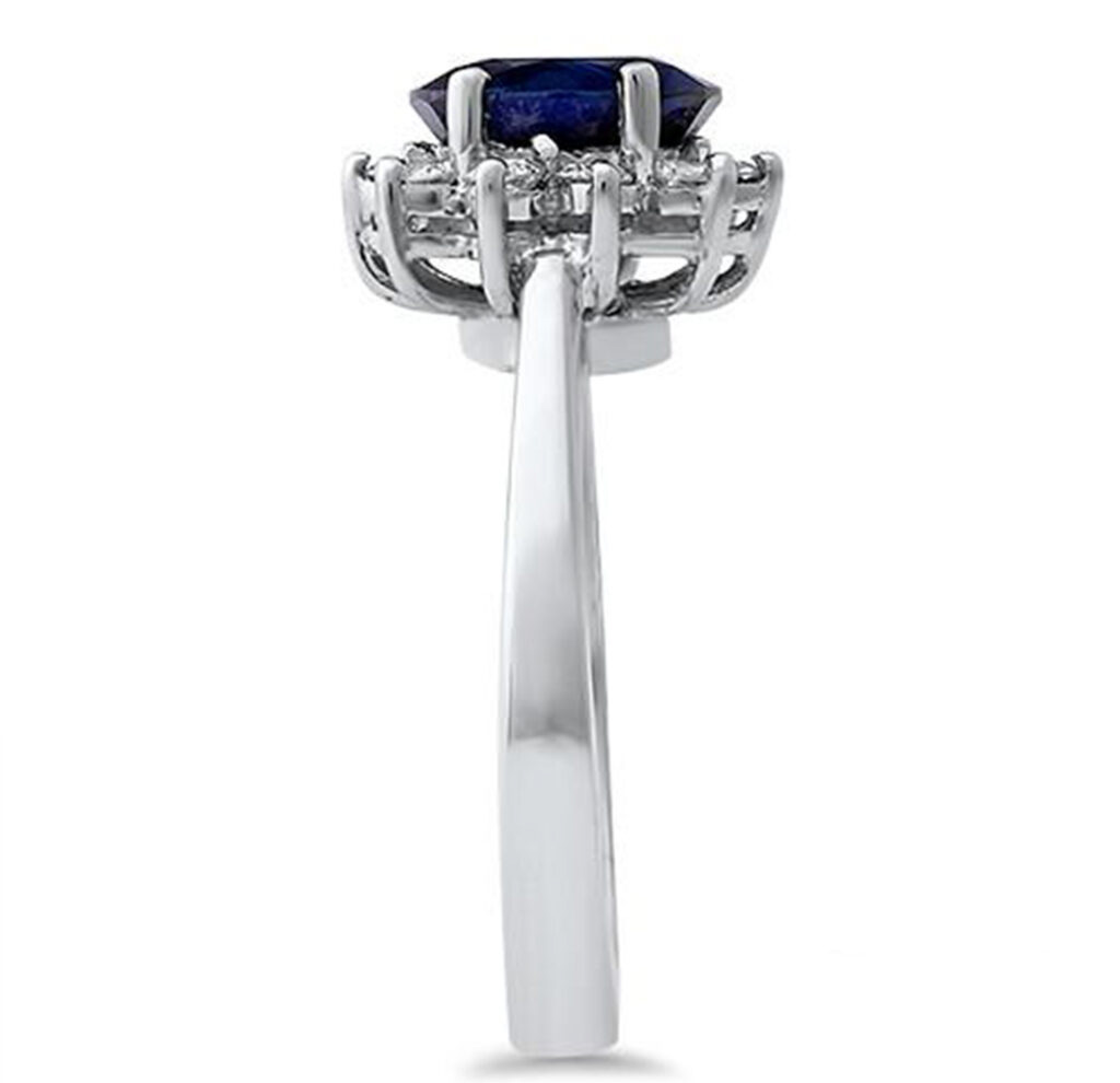 1.5+ ct Ceylon Blue Sapphire Halo Ring in 18K White Gold